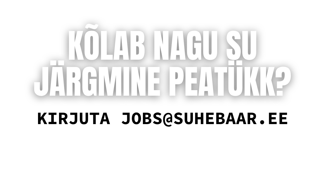 SUHE on rohkem kui baar või sündmuspaik. See on koht, kus programm, inimesed ja õhkkond peavad omavahel klappima ning kus edu ei sünni juhuslikult, vaid läbimõeldud tööst. Otsime inimest, kes võtab selle terviku enda kanda – kes hoiab suunda, juhib tiimi ja viib asja järgmisele tasemele. Kui tahad olla eestvedaja, kes hoiab tiimi koos, koostööd sujuvana ja SUHE arengut pidevalt liikumises, siis loe edasi!